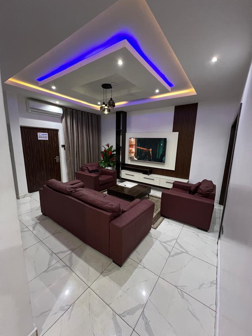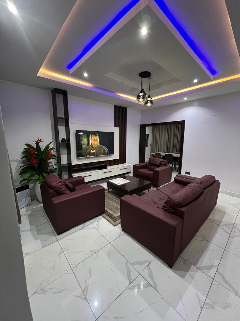 - Amenities: 24Hrs Power with generator and transformer, Clean rooms with Fitted Wardrobe, En-suite Air Conditioned Room, Fully Fitted Kitchen with cooking utensils, Garden Area, Internet & Netflix Access, PlayStation (on request), Security